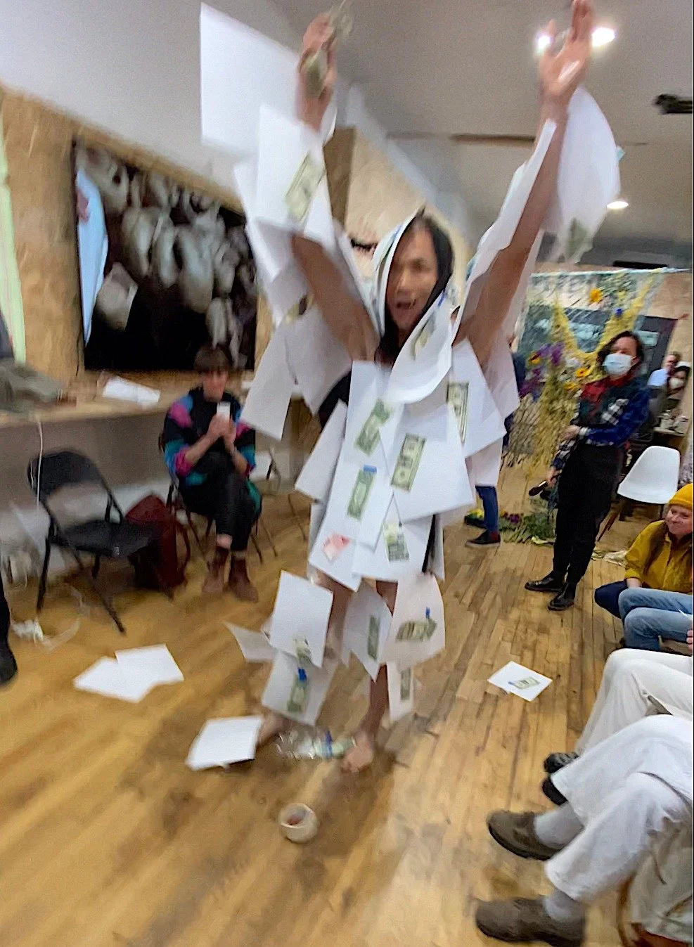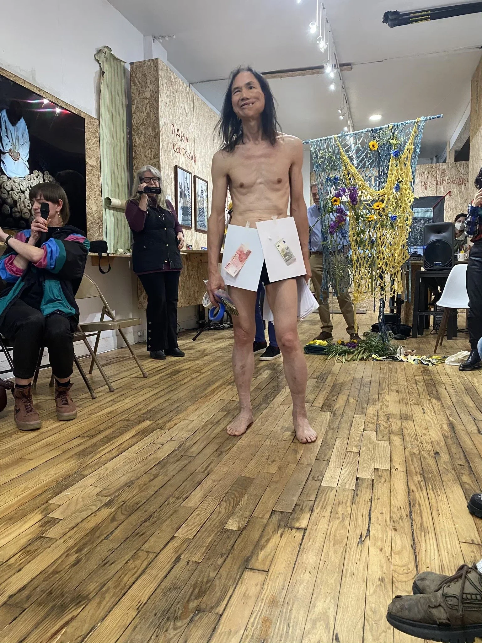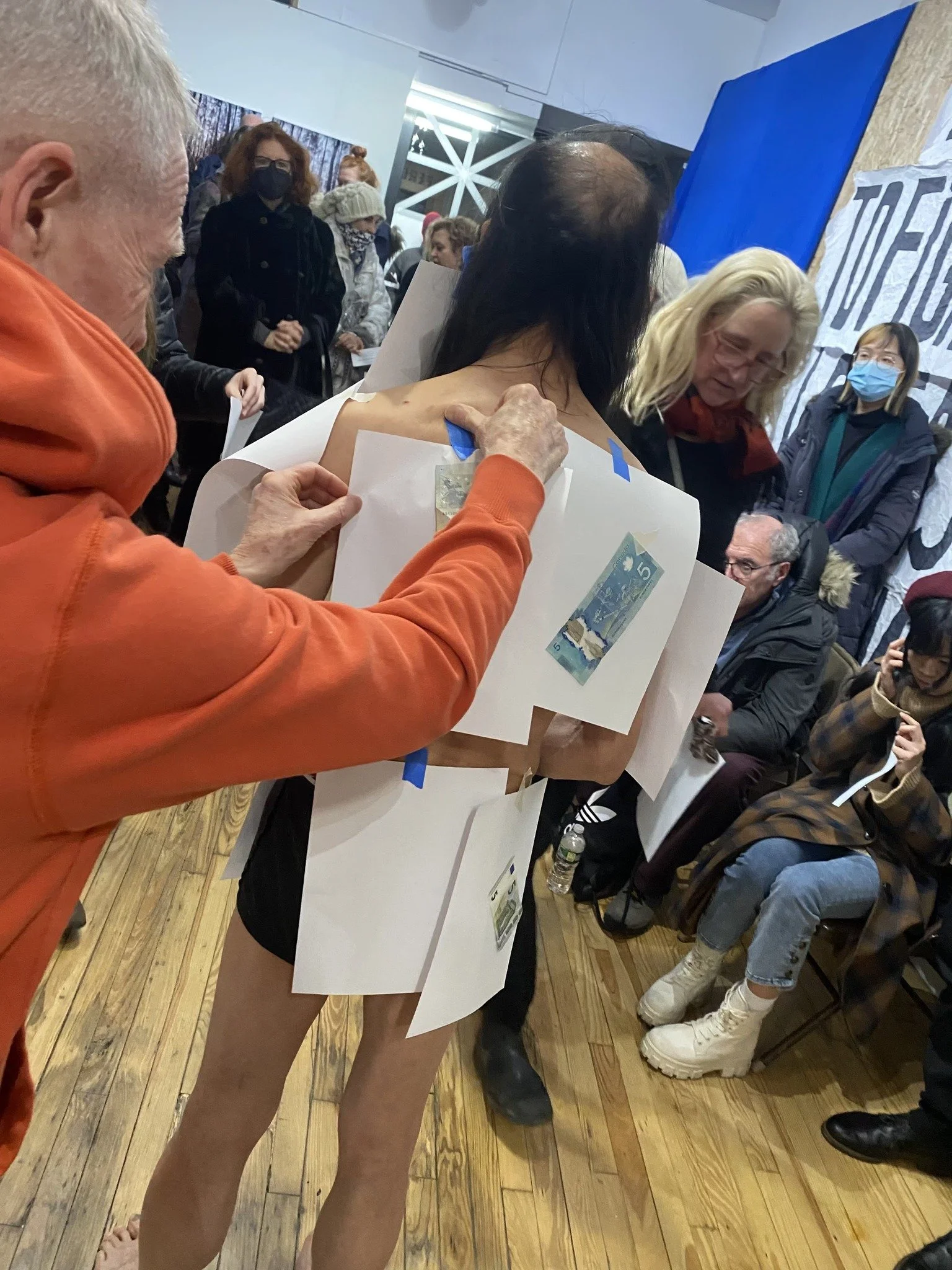"White paper" protest - held blank sheets of white paper in a symbol of tacit defiance. I want to use this as a point of what is about China now...I will invite people to take the white paper to stick on my body anywhere they want...to satire about communist China...later a series (consecutive) happening with China...then some other real money on the top...which is the money game...hahaha... like NFT art and more...